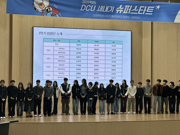 이어 한 학기 동안 학우 여러분을 위해 힘써주실 각 학년 과대단을 소개하는 시간을 가졌습니다.