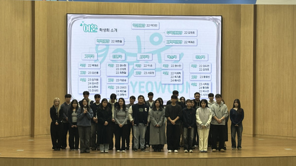 이번 학기에도 학우 여러분의 학교생활이 의미 있고 값진 시간들로 채워지길 바라며, 이를 위해 여운은 최선을 다해 다양한 행사를 기획하고 준비하겠습니다. 준비된 행사들이 더 빛날 수 있도록 학우 여러분의 많은 관심과 참여 부탁드립니다!