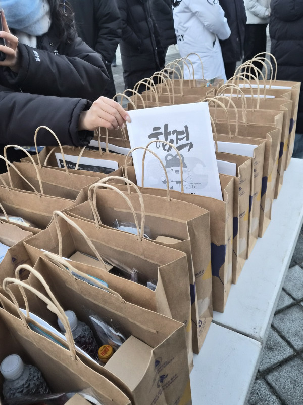 이른 새벽, 여운 학생회는 국가고시 시험장으로 향하는 선배님들께 응원 키트를 전달하며 진심 어린 마음을 전했습니다.