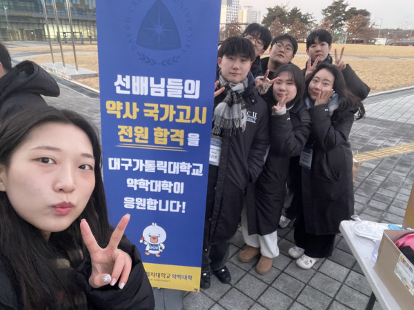 4년이라는 긴 시간의 끝에서 선배님들의 약사 국가고시가 진행되었습니다. 하루하루 묵묵히 쌓아온 노력과 끝까지 포기하지 않고 견뎌낸 시간들을 후배들은 마음에 담아 선배님들을 응원했습니다.