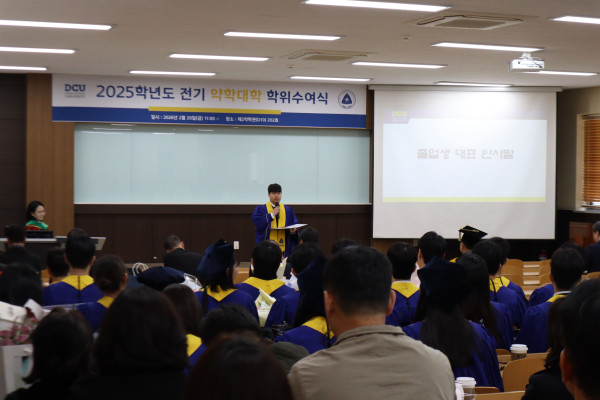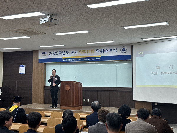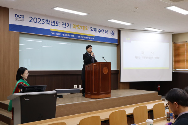 사회로 나갈 새내기 약사들을 응원하기 위해 김익균 학장님께서 졸업식사를 해주셨으며 교목실장님이신 김도현 신부님,