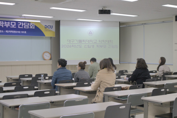 오늘 약학대학에서는 학부모님들을 모시고 간담회를 진행하였습니다. 이승미 학장님께서 6년간의 교육과정과 대구가톨릭대학교 약학대학이 재학생들에게 약속드릴 수 있는 양질의 교육에 대해 전달해 드렸고, 김익균 교수님께서도 학교의 방향에 대해 좋은 말씀을 전해주셨습니다. 학생회장 이다인 학우가 재학생들을 위해 준비된 행사와 복지에 대해 설명드렸고 이외에도 제반 비용과 장학금 제도 등에 대한 안내가 이어졌습니다.